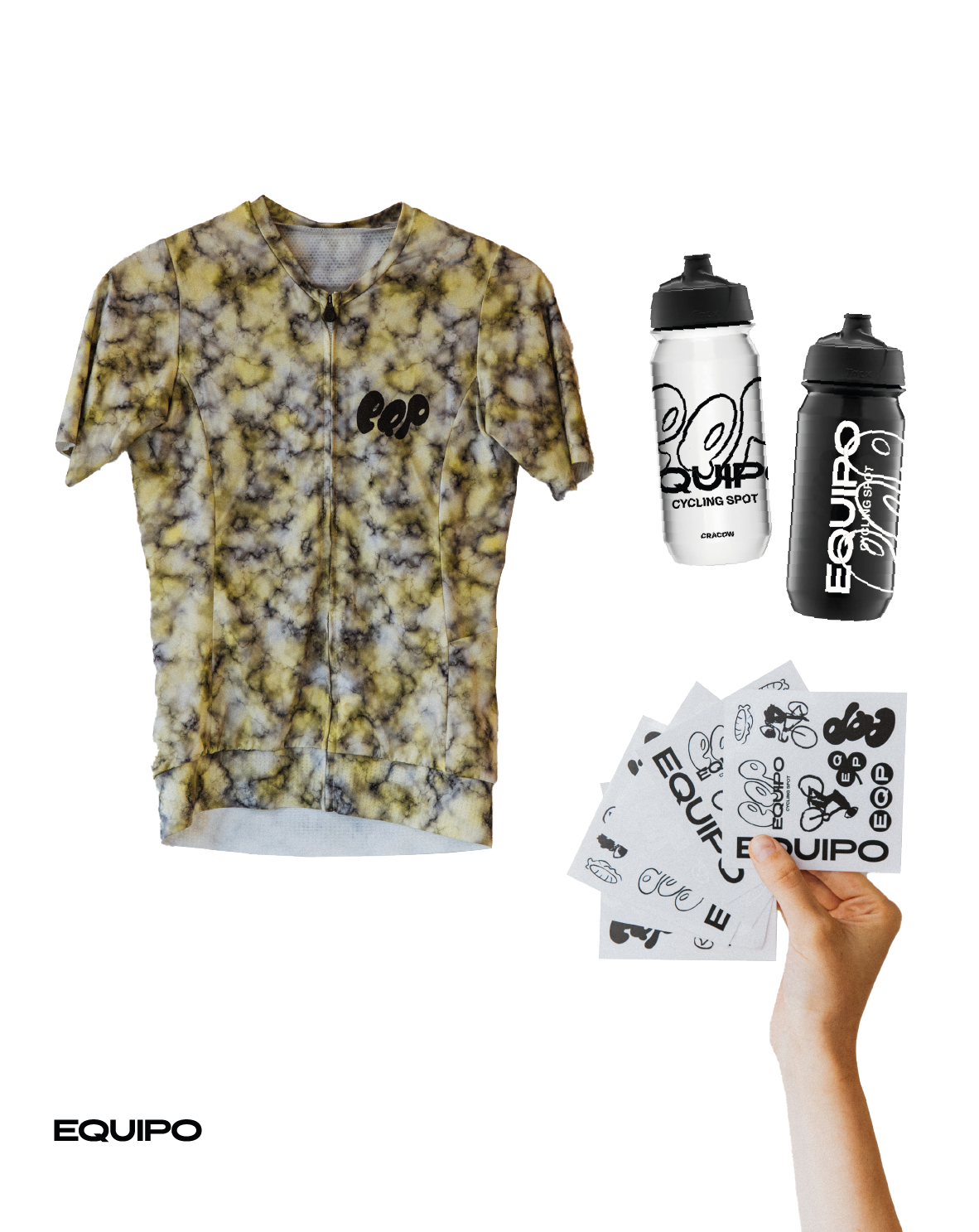 Box nr 3 to zestaw dla tych, którzy lubią wyróżniać się stylem na trasie! W środku znajdziecie naszą koszulkę rowerową– do wyboru w wersji marmurkowej lub klasycznej czerni. Do tego dokładamy nasze kultowe bidony w czerni i bieli – bo elegancja tkwi w detalach.